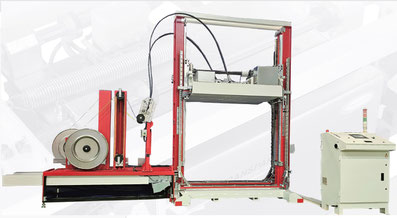 eignet sich für die horizontalen Umreifen von Paletten-Produkten jeder Art und Größe und ist leicht in Fertigungslinien zu integrieren. Das Programm der Systemsteuerung bietet die Möglichkeit ein oder mehrere Bänder zu benutzen, je nach den Verpackungsbedürfnissen des Kunden.